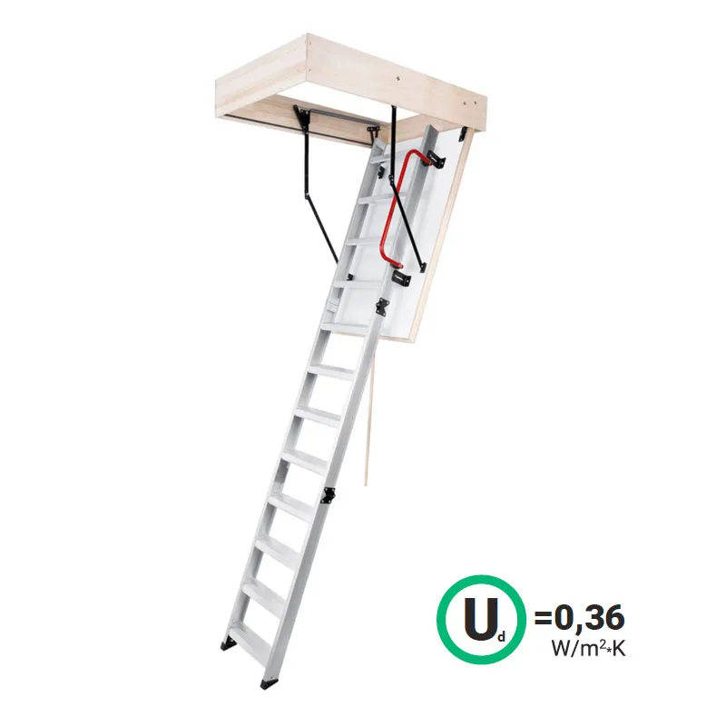 Складная алюминиевая тетива с качественным механизмом открытия-сворачивания позволяет с комфортом часто использовать лестницу.