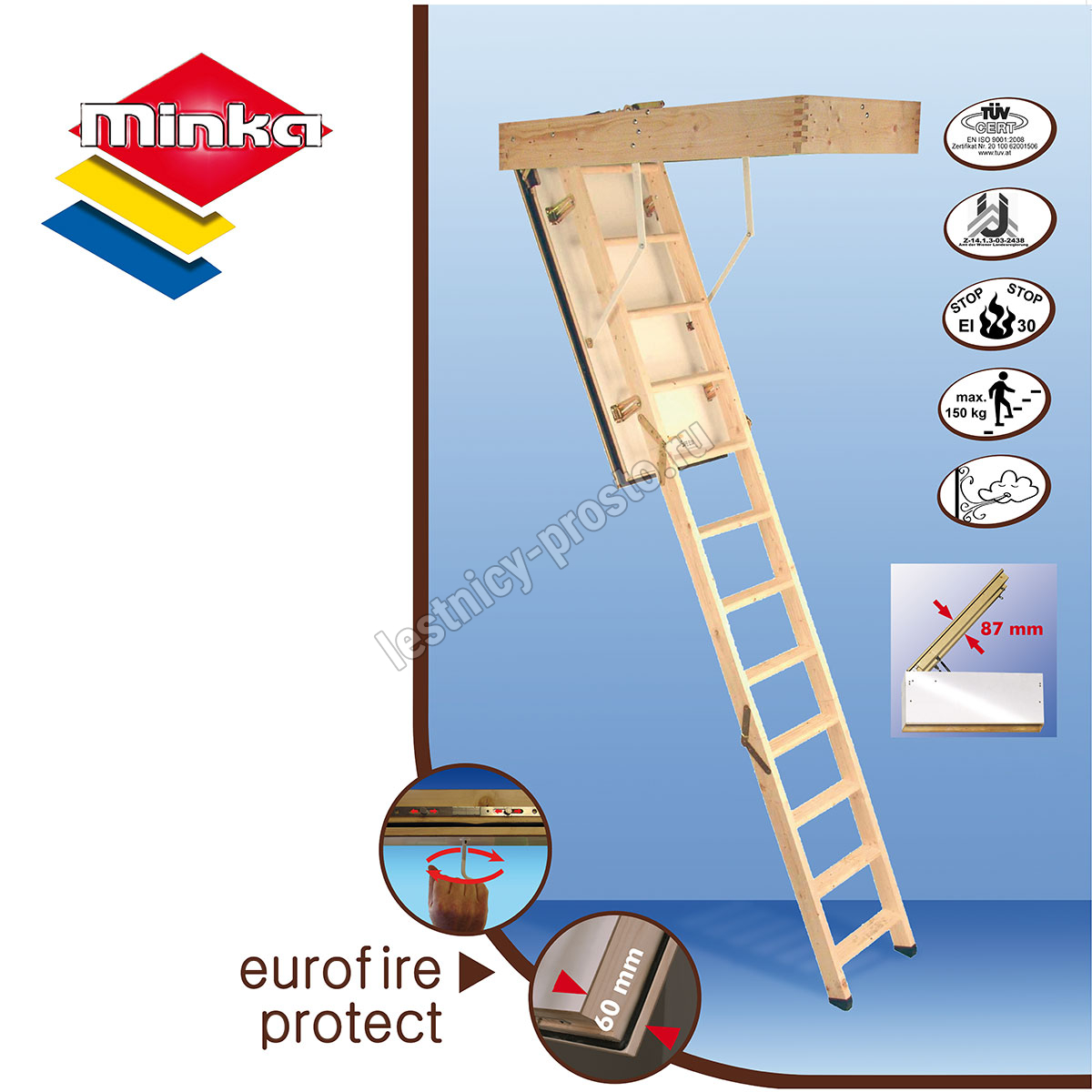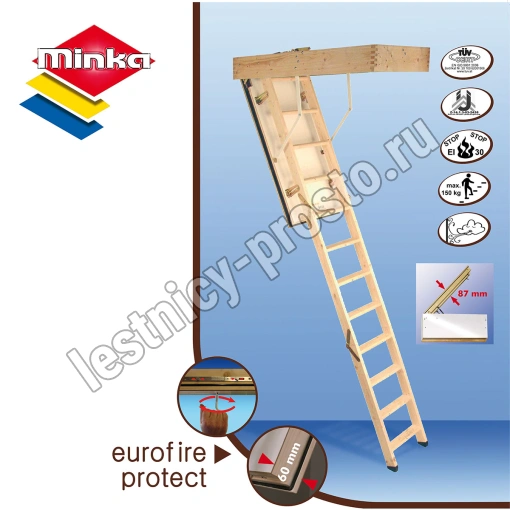 Чердачная складная лестница MINKA EUROFIRE PROTECT, 70×120 см, h-275 см