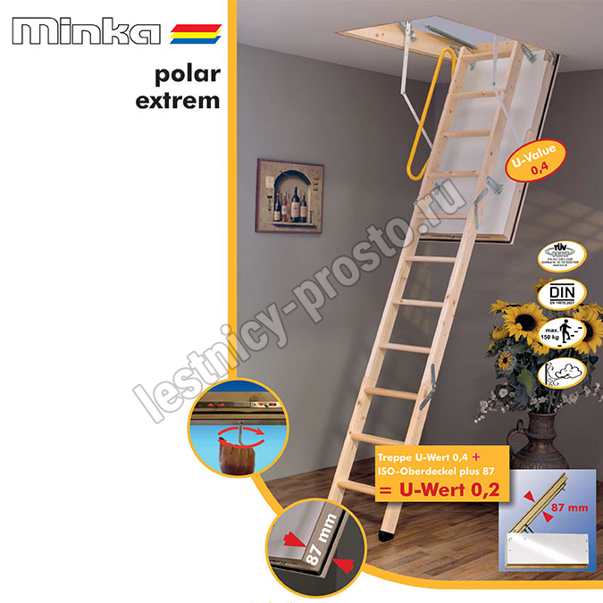 Чердачная складная лестница MINKA POLAR EXTREM 130×70 см, h-280 см