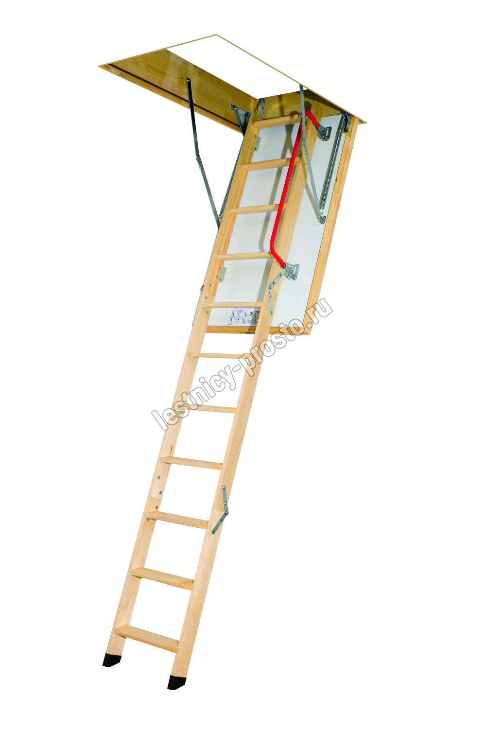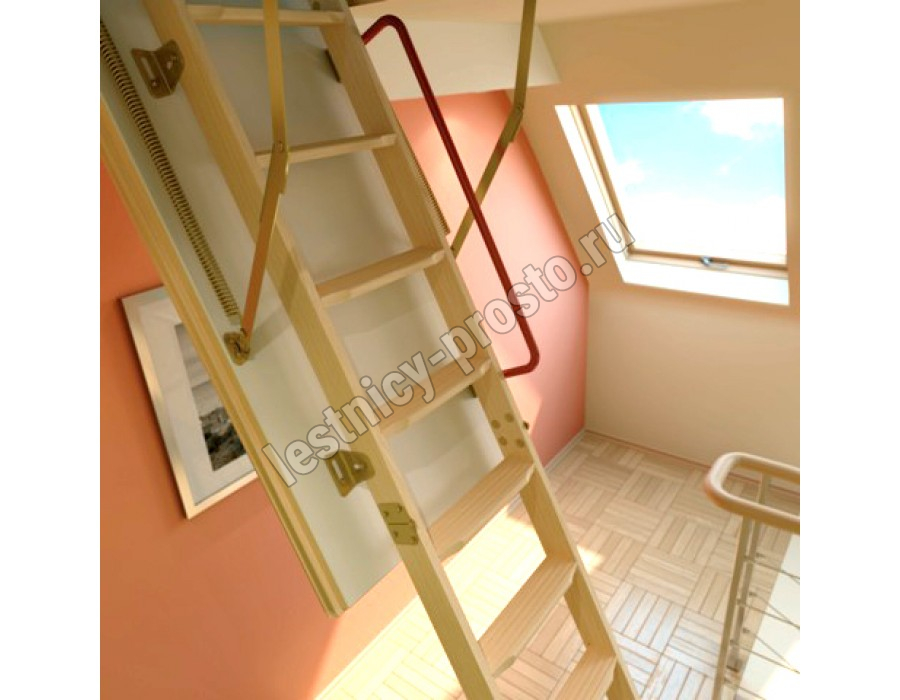 Чердачная лестница LTK Thermo изготовлена из сосны высшего качества и укомплектована утепленной крышкой люка толщиной 66 мм с повышенными теплоизоляционными свойствами. Данную модель лестницы можно использовать даже в домах, где значительна разница температур между этажами, и тем самым ограничить проникновение холода в жилые помещения. Лестница состоит из трех секций, которые компактно складываются и «хранятся в потолке». Крышка люка облицована ДВП белого цвета, что делает ее практически незаметной при установке в светлом или белом потолке. Для большего удобства и безопасности эксплуатации лестница Thermo оснащена боковым металлическим поручнем, а пластиковые наконечники предохраняют поверхность пола от повреждения и увеличивают устойчивость конструкции