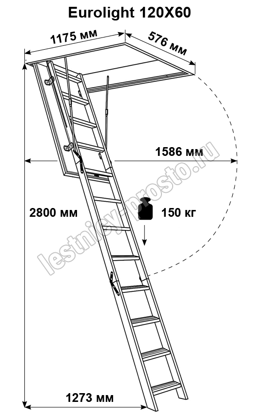 Лестница чердачная "EUROLIGHT" 120 x 60, В КАРТОННОЙ УПАКОВКЕ