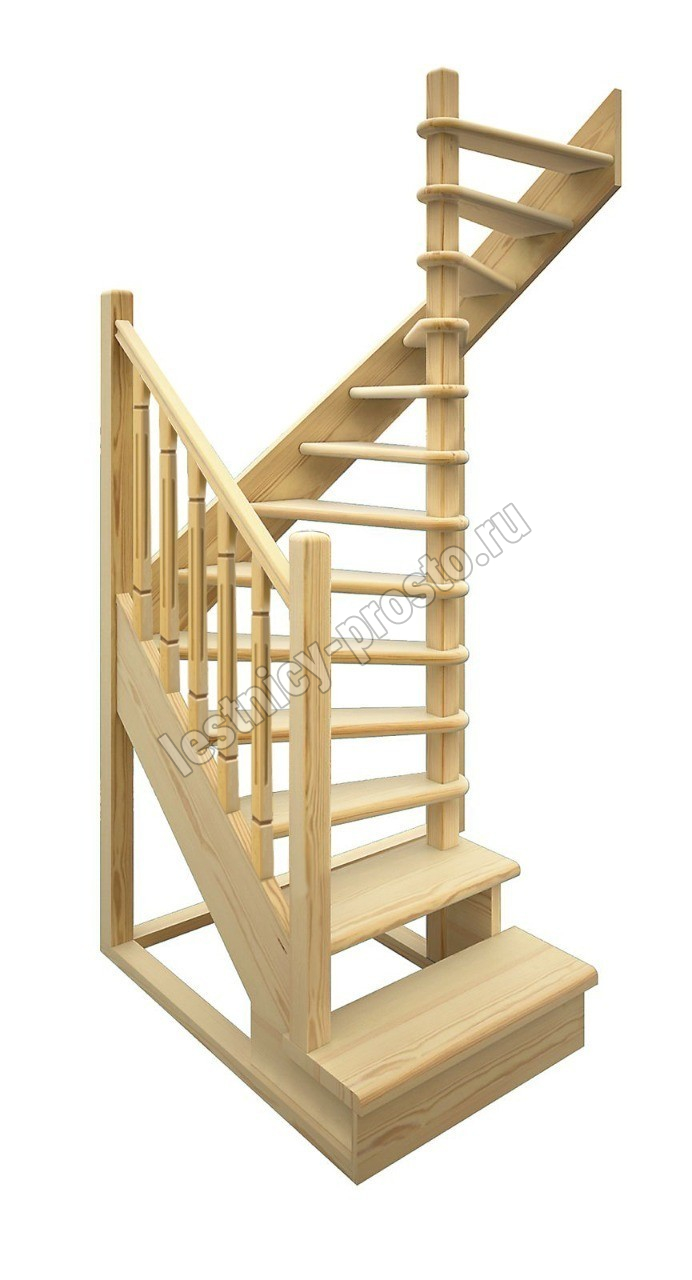 Деревянная межэтажная лестница ЛЕС-03 2525-2720 проем 1640-900, Лиственница