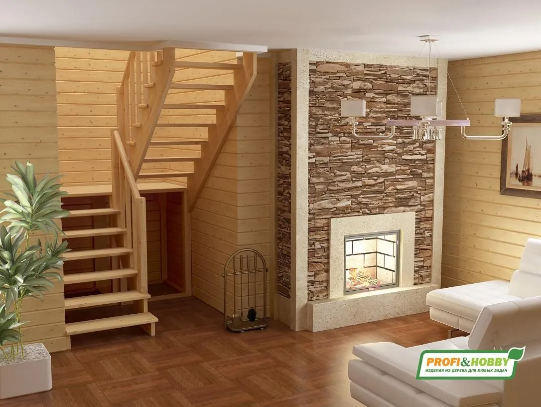 Деревянная межэтажная лестница ЛЕС-04, Бук