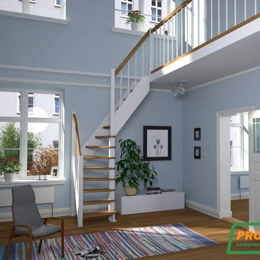 Универсальная лестница, имеющая в основе своей конструкции наклонную опорную балку. Легко впишется в любой интерьер, даже на неровном полу. Место под площадкой можно закрыть и использовать для хранения различных предметов. Монтаж осуществляется силами двух человек на объекте по указаниям, приведенным в паспорте на лестницу.