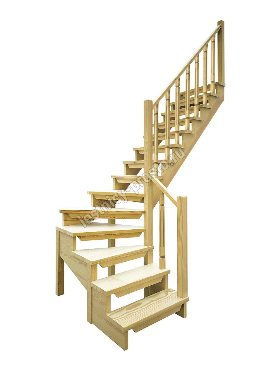 Деревянная межэтажная лестница ЛЕС-09 2900 проем 2580-900, Сосна