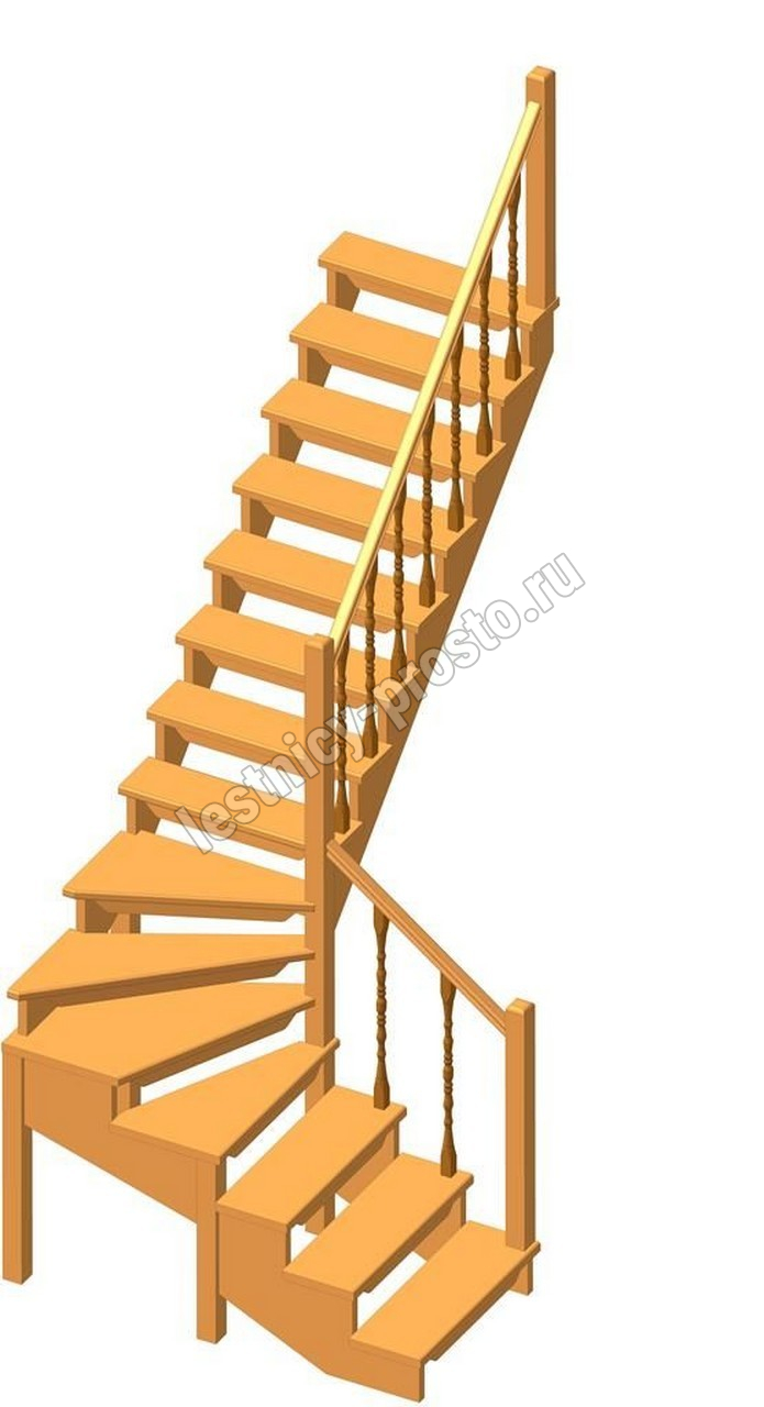 Деревянная межэтажная лестница ЛЕС-09 3105 проем 2580-900, Сосна
