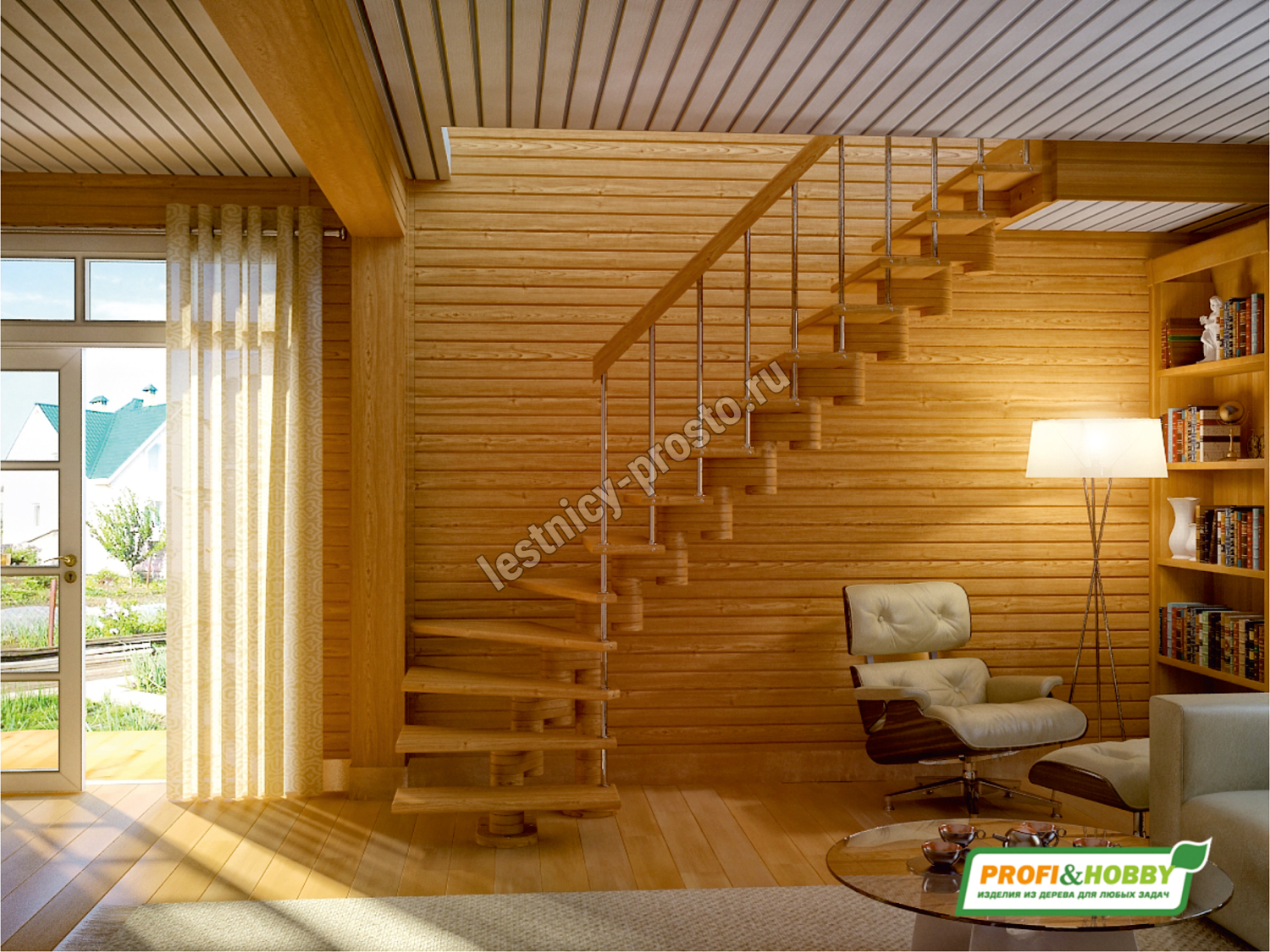 | Лестница из лиственницы К-008М |