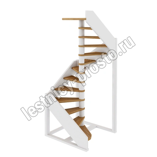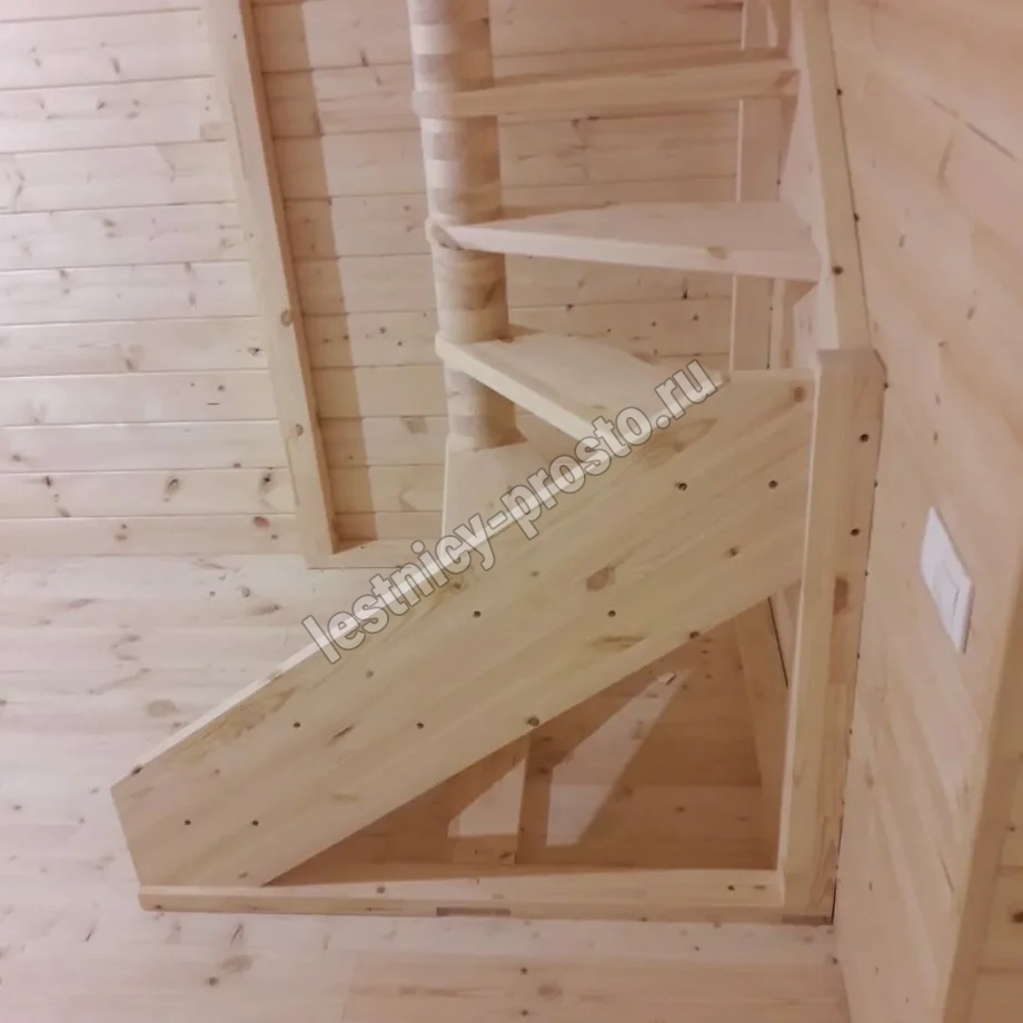 Небольшая аккуратная лестница, хорошо подойдет для помещения с небольшим проемом, поможет сэкономить пространство и организовать комфортный подъем на уровень выше. Возможны варианты лестницы из сосны под покраску, сосны, дуба, бука или ясеня. Для увеличения срока эксплуатации мы рекомендуем покрыть элементы лестницы защитным средством. Вы можете сделать это самостоятельно или заказать предварительное покрытие необходимым средством (или тонирование) в нашем цеху.