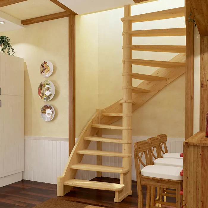 Ступени и поручень лестницы изготовлены из бука, остальные элементы из сосны.