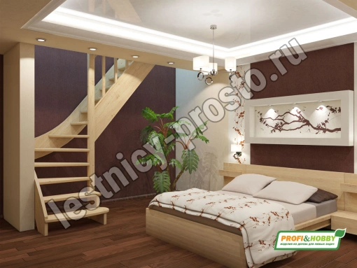 Ступени и поручень лестницы изготовлены из бука, остальные элементы из сосны.
