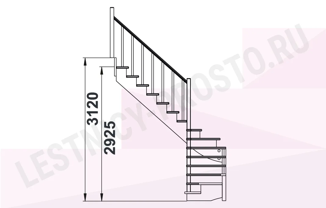Высота лестницы 2925 - 3120 мм
