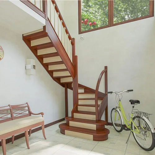 Базовый комплект включает в себя деревянные элементы лестницы и ограждения без какого-либо покрытия. Вы можете заказать у нас покраску лестницы в цвета, отвечающие особенностям вашего помещения.