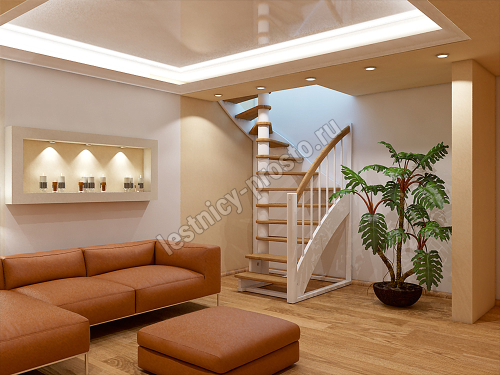 В производстве лестницы К-005м/1 под покраску используется сосна с небольшими изменениями цвета, что практически не влияет на ее механические свойства и почти незаметно при покраске в темные цвета. Базовый комплект включает в себя деревянные элементы лестницы и ограждения без какого-либо покрытия. Вы можете заказать у нас покраску лестницы в цвета, отвечающие особенностям вашего помещения.