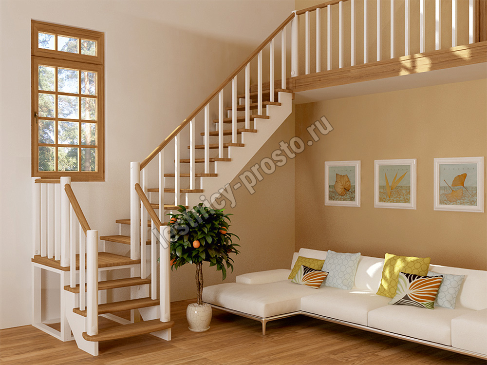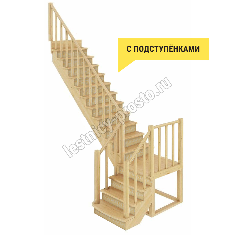 Базовый комплект включает в себя деревянные элементы лестницы с подступёнками и ограждения без какого-либо покрытия.