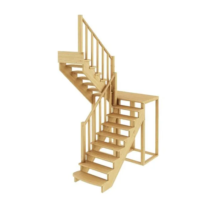 Материал: ясень (ступени и поручень), сосна (косоуры, столбы, балясины)