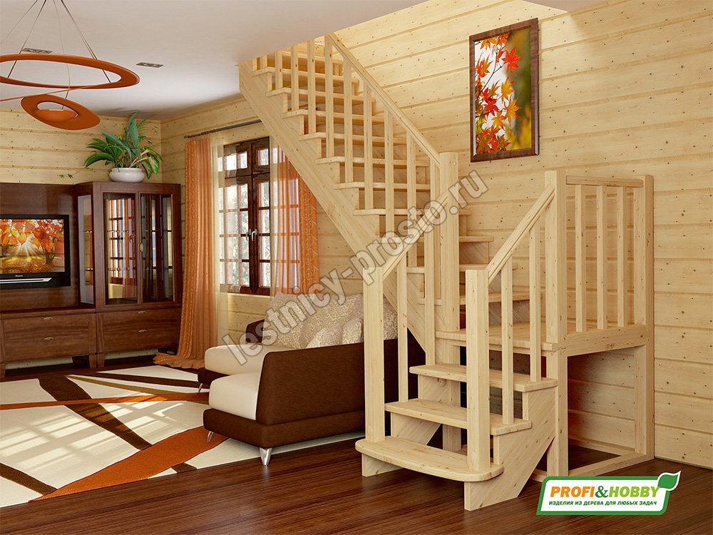 Ступени и поручень лестницы изготовлены из ясеня, остальные элементы из сосны.