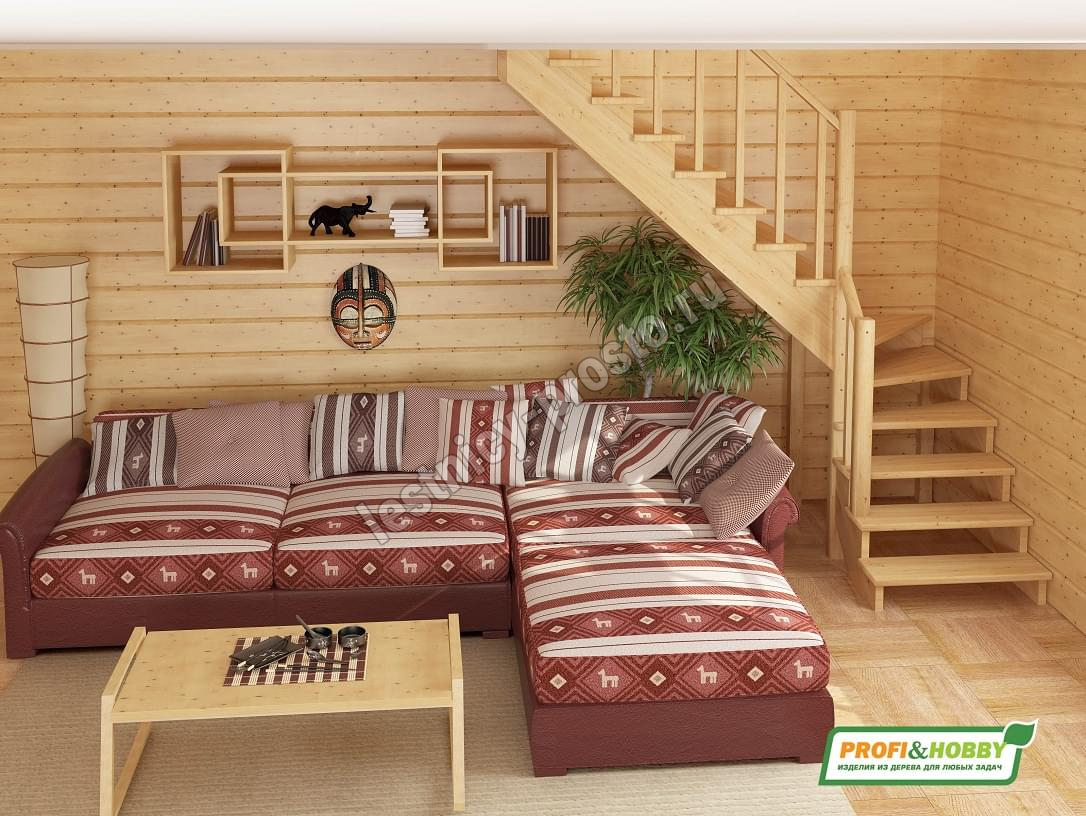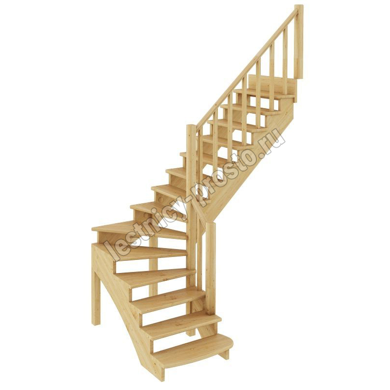Базовый комплект включает в себя деревянные элементы лестницы с подступёнками и ограждение без какого-либо покрытия.
