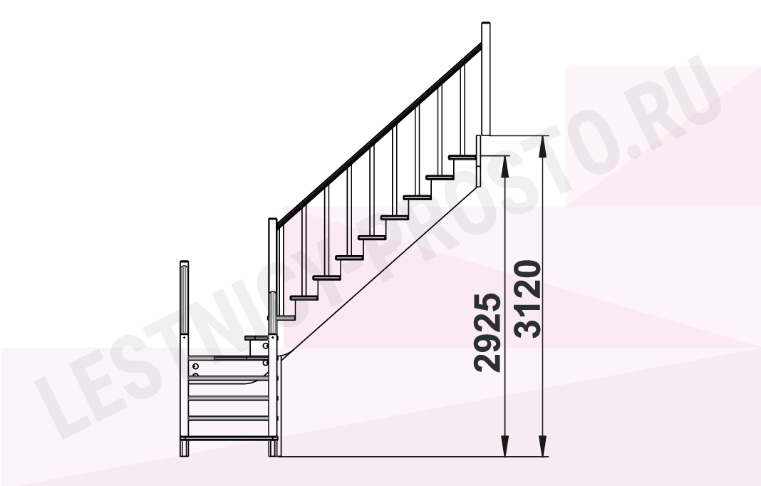 Ступени и поручень лестницы изготовлены из бука, остальные элементы из сосны. Возможно изготовление данной модели полностью из бука.
