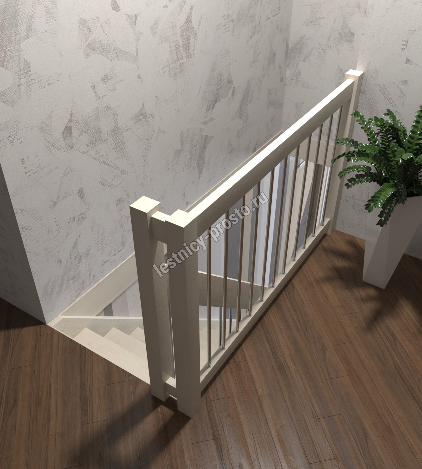 Надёжная современная лестница выполнена по немецкой технологии. Стоимость указана для лестницы с ограждением (с одной стороны); Поставляется в разобранном виде, в комплекте необходимый крепёж; Лестницу можно собрать самостоятельно; Так же, вы можете заказать услугу монтажа нашими специалистами; 4 вида породы дерева для изготовления лестницы: сосна, бук, ясень, дуб; возможна комбинированная лестница: из сосны (ступени бук, ясень, дуб); Деревянные элементы без какого-либо покрытия, отшлифованы, готовы к покраске. За дополнительную плату, вы можете изменить любые параметры, а именно: увеличить глубину ступени; увеличить ширину марша до 900 мм. и выше; заказать подступенки к лестнице; заказать отделку перекрытия (между 1-м и 2-м этажами); изготовить дополнительный промежуточный марш; заказать ограждение 2-го этажа; покраска в любой цвет или несколько цветов или покрытие защитными средствами; дополнение балясины из нержавеющей стали деревянными элементами; покраска балясин из нержавеющей стали порошковой краской в цвет RAL.