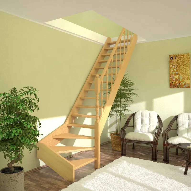 Лестница Универсал изготавливается как с поворотом направо, так и с поворотом налево. Под заказ возможно изготовление лестницы Универсал с высотами этажа: 2300 мм, 2500, мм, 2700 мм, 2900 мм, 3100 мм. В стандартной комплектации лестница поставляется в натуральном цвете, то есть без окрашивания. Первая ступень может быть пригласительной (со скругленными краями или прямой). Базовые ограждения можно заменить на ограждения любого другого вида.