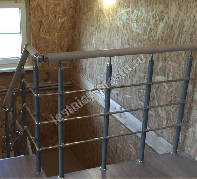 Ограждение для прямой лестницы PROSTO DUE/DOUBLE с крашеными стойками и струнами