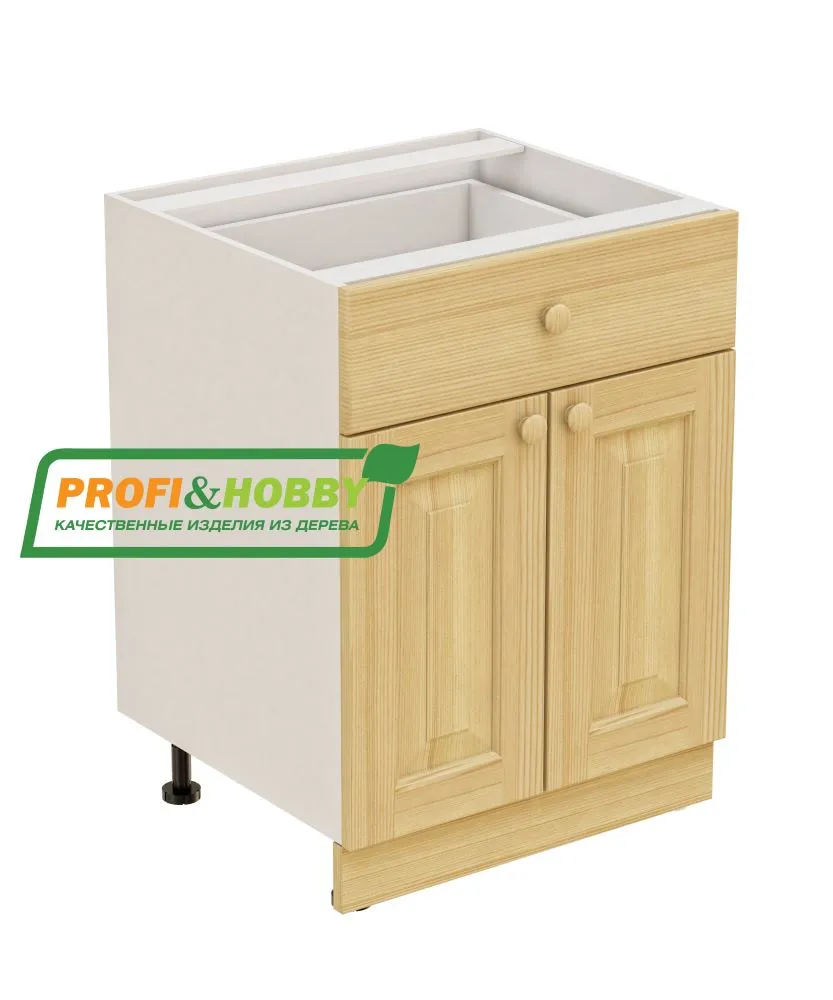 Тумба 2 двери 1 ящик 600х530х720 + фасад сосна бесцветный акриловый лак