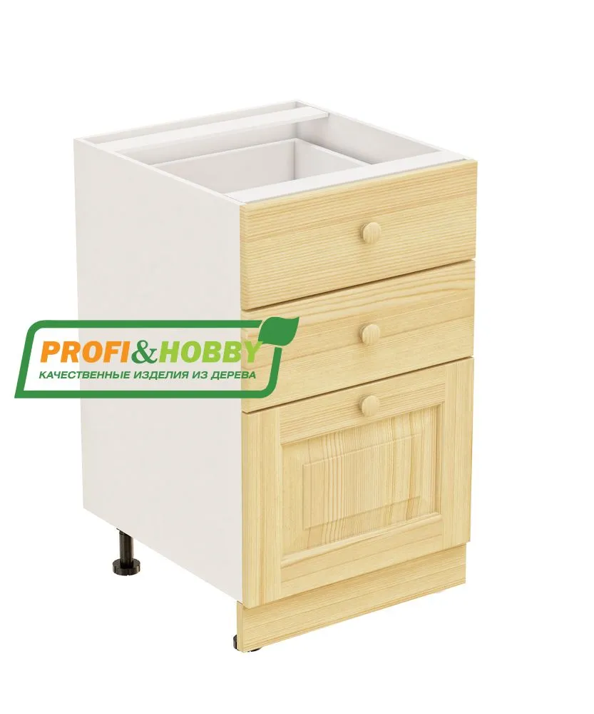 Тумба 3 ящика 500х530х720 + фасад сосна бесцветный акриловый лак