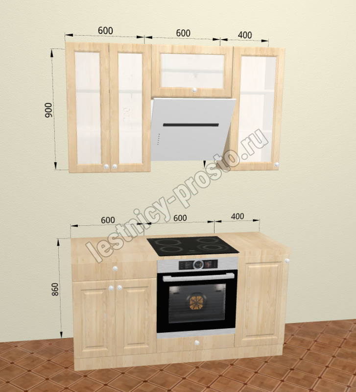 Кухня 1.6 х 2.32 м, массив сосны, бесцветный акриловый лак