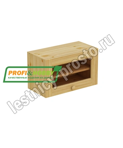 Шкаф-антресоль навесной 600 х 300 х 360, под стекло, сосна, бесцветный акриловый лак