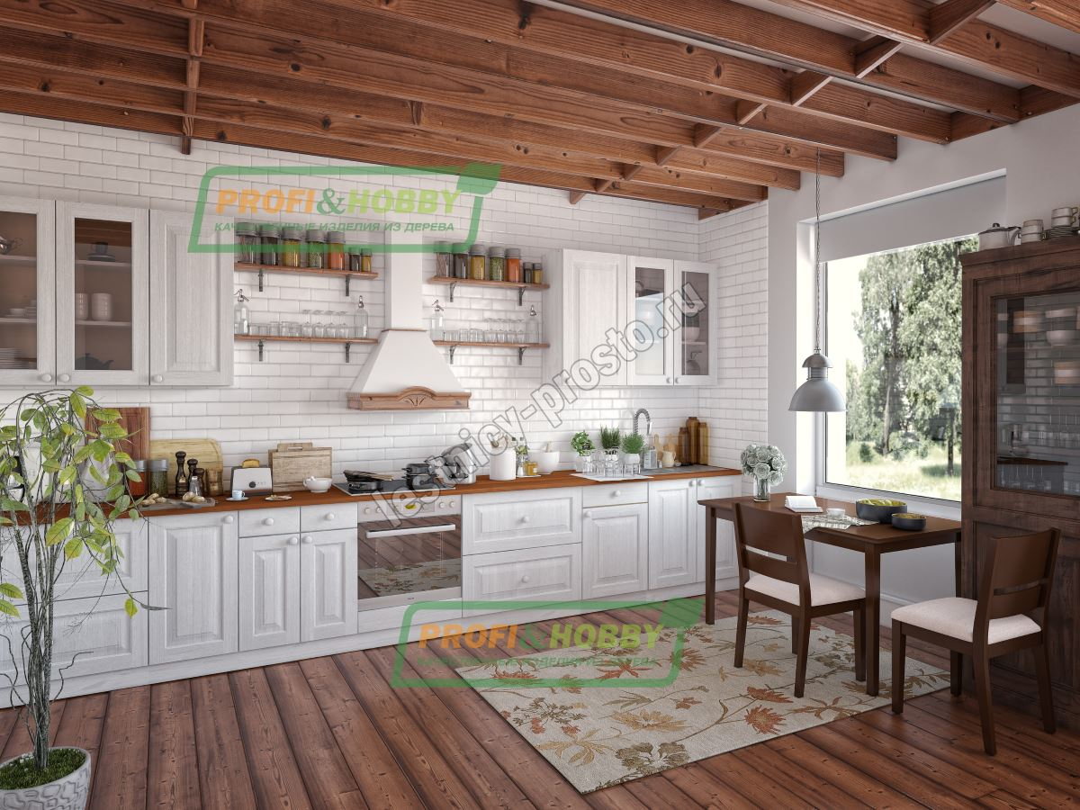 Шкаф над вытяжкой изготовлен из 100% массива дерева, без шпона и без МДФ/ДСП.