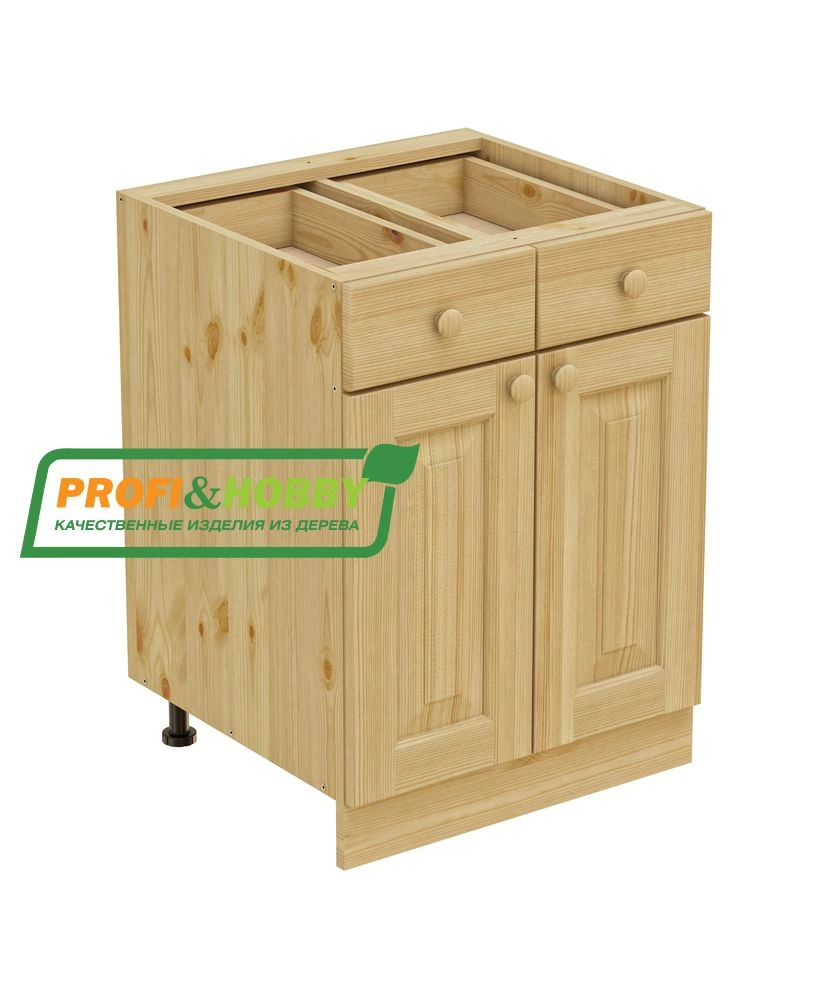 Тумба 2 двери, 1 ящик 600 х 560 х 720 сосна, бесцветный акриловый лак