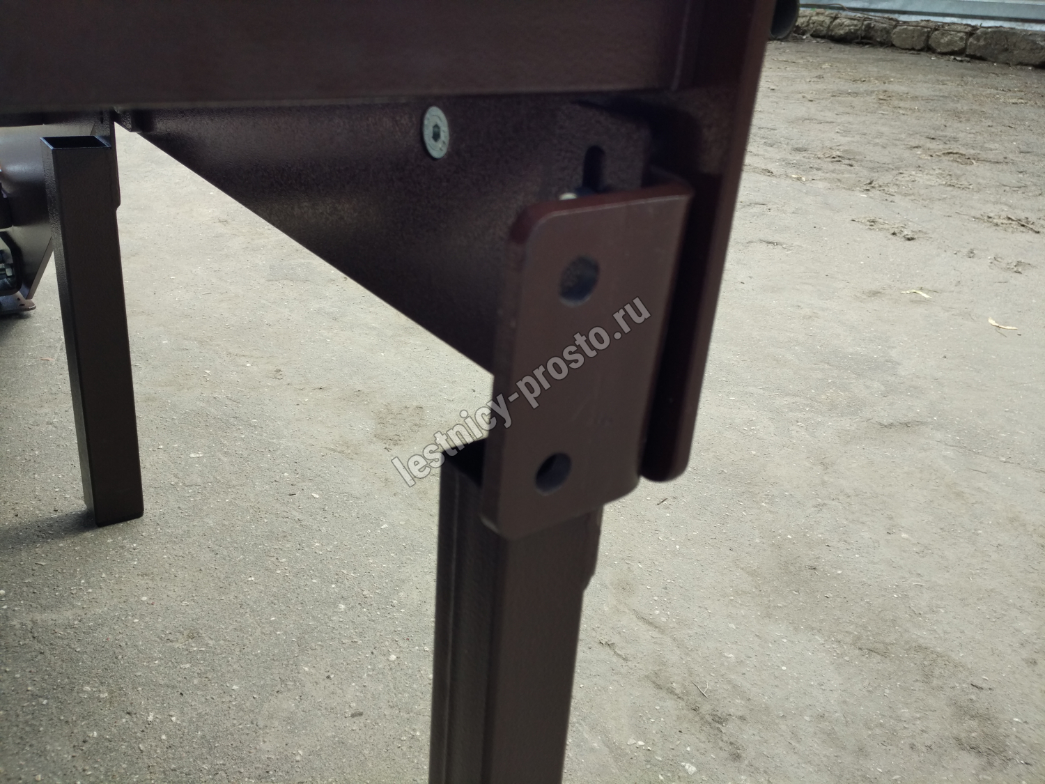 Покрытие порошковое, очень прочное и долговечное. Все детали каркаса крепятся с помощью болтов, благодаря чему Вы можете собрать каркас самостоятельно без применения сварки. В зависимости от ширины лестницы, каркас состоит из двух (ширина до 1 метра) или трех (ширина до 2 метров) опорных балок (тетив).