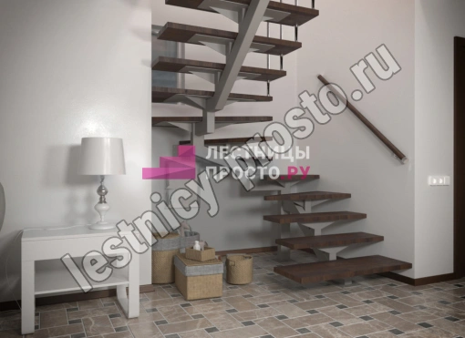 Конструкция представляет собой стальной монокосоур, на который крепятся ступени из выбранной породы дерева.
