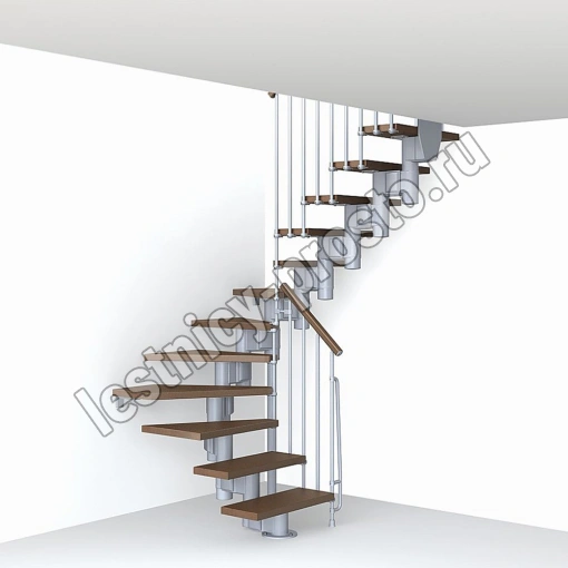 При монтаже этой лестницы, возможно регулировать высоту и глубину шага, таким образом можно получить лестницу под высоты этажа в диапазоне 2250 - 3030 мм, кроме того, установив дополнительный комплект увеличения высоты, можно поднять высоту лестницы до 3730 мм. Ширина проступи регулируется при монтаже в пределах 180 - 220 мм. Каркас и стойки ограждения выполнены из пластифицированного металла. Уникальный модульный каркас позволяет собрать лестницу необходимой формы.