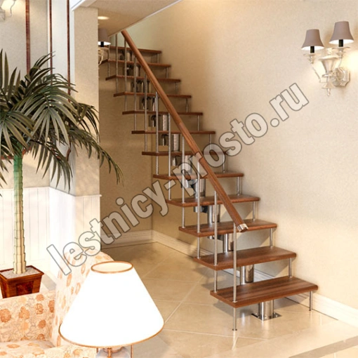 Каркас лестницы представляет собой набор модулей, которые комплектуются уже готовыми к монтажу.