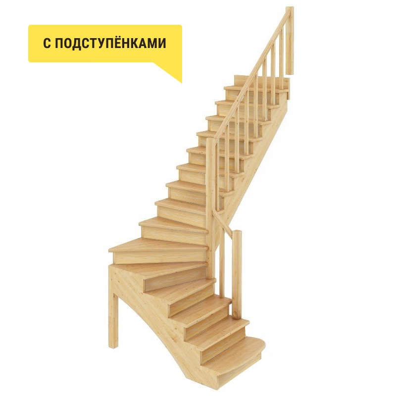 Базовый комплект включает в себя деревянные элементы лестницы и ограждения без какого-либо покрытия.