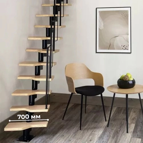 Лестница Prosto Urban Black гусиный шаг 700 мм, h216-312 см (12 ступеней), ясень