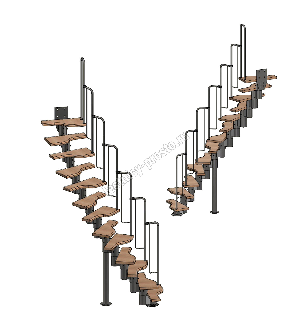 Лестница Prosto Urban Black гусиный шаг 600 мм, h234-336 см (13 ступеней), бук