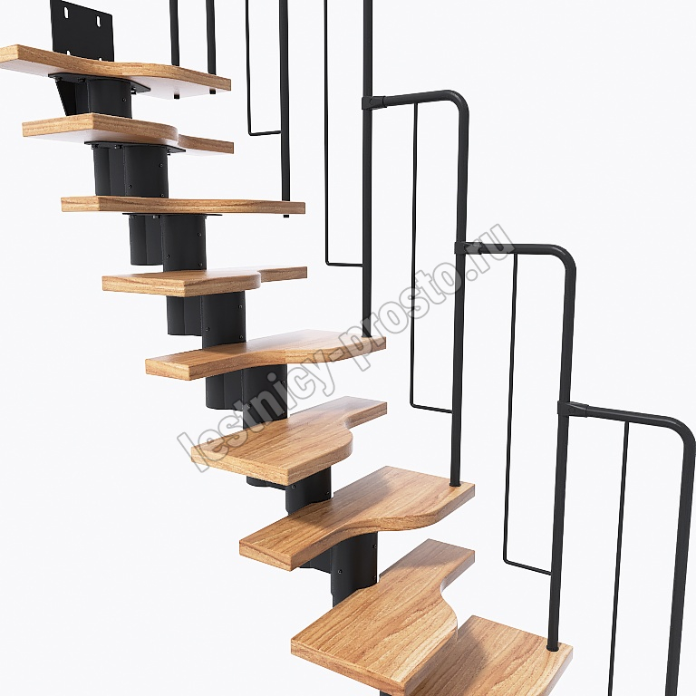 Лестница Prosto Urban Black гусиный шаг 600 мм, h342-336 см (13 ступеней), дуб