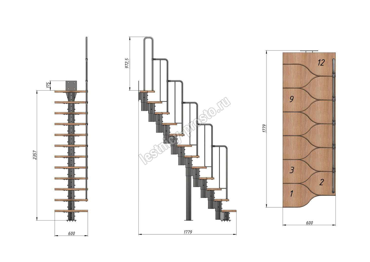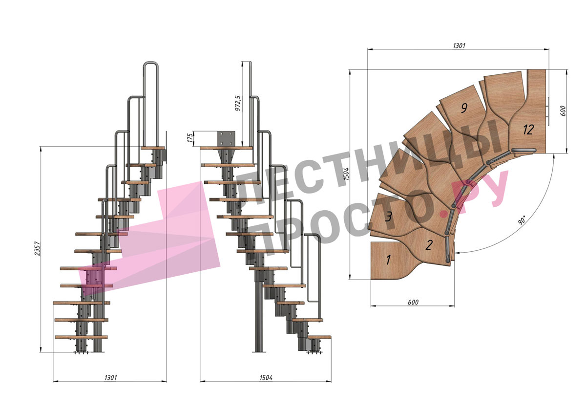 - Регулируемый по высоте в пределах 180-240 мм модуль. Большой диаметр и толщина металла деталей обеспечивают жесткость и прочность конструкции. Регулировка каждого модуля по высоте позволяет легко приспособить лестницу под ваше помещение.
