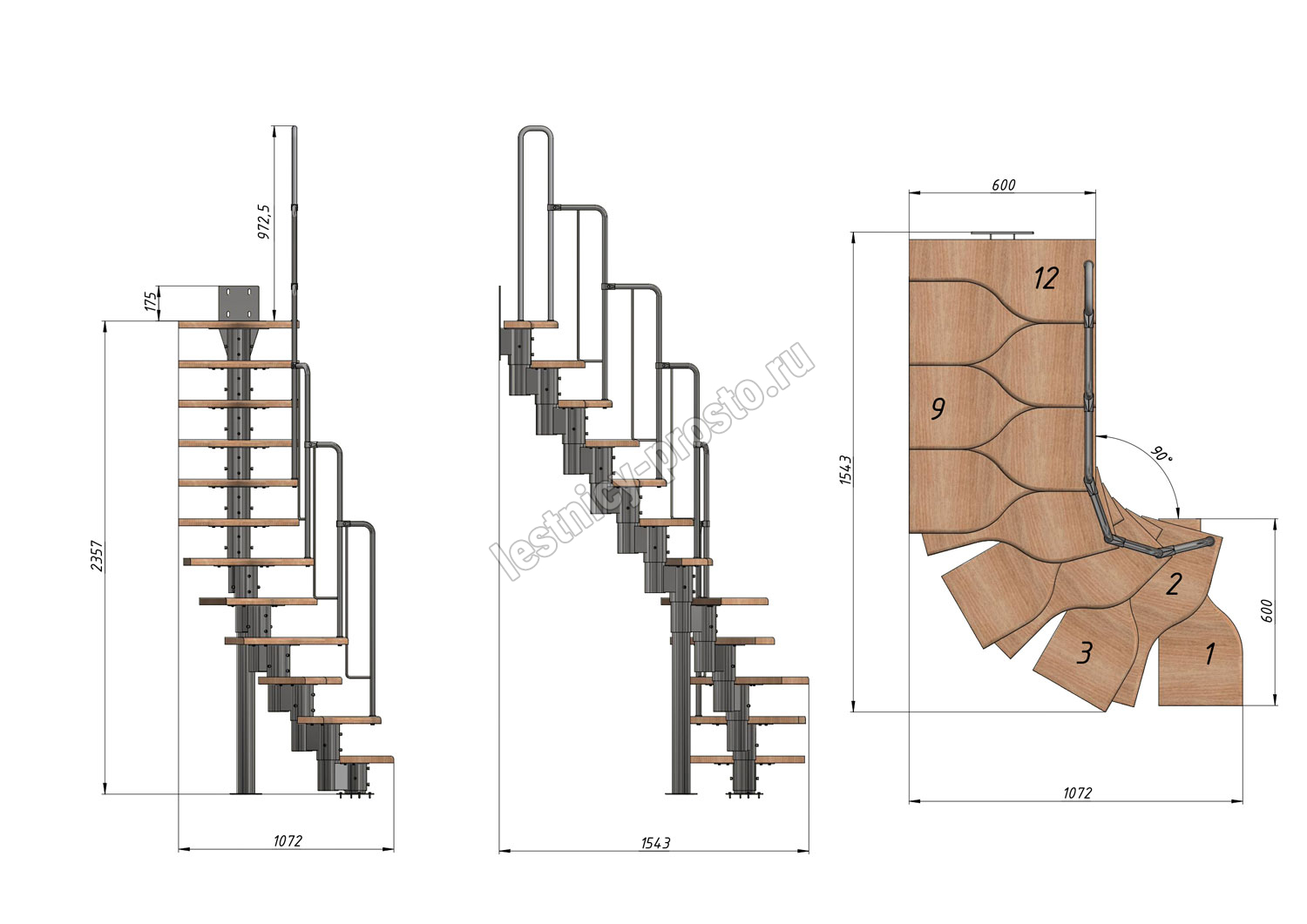 -Возможность установить лестницу как прямую, так и с поворотом внизу или вверху; при этом нужно понимать, что поворот менее удобен, чем прямой участок лестницы.