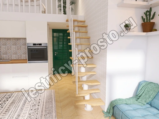 Лестница Prosto Urban White гусиный шаг 600 мм, h216-312 см (12 ступеней), берёза мультиплекс