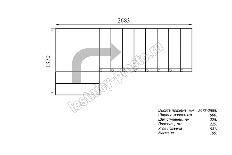 Модульная лестница Статус 225 2475-2585, Черный, Сосна, Крашеная, Без Ступений
