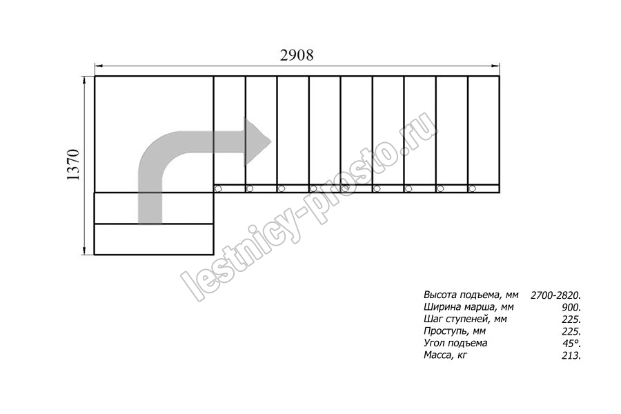 Ширина марша 900 мм