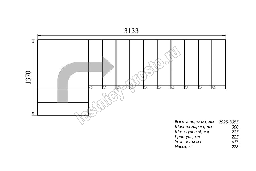 Модульная лестница Статус 225 2925-3055, Черный, Лиственница, Нержавеющая сталь