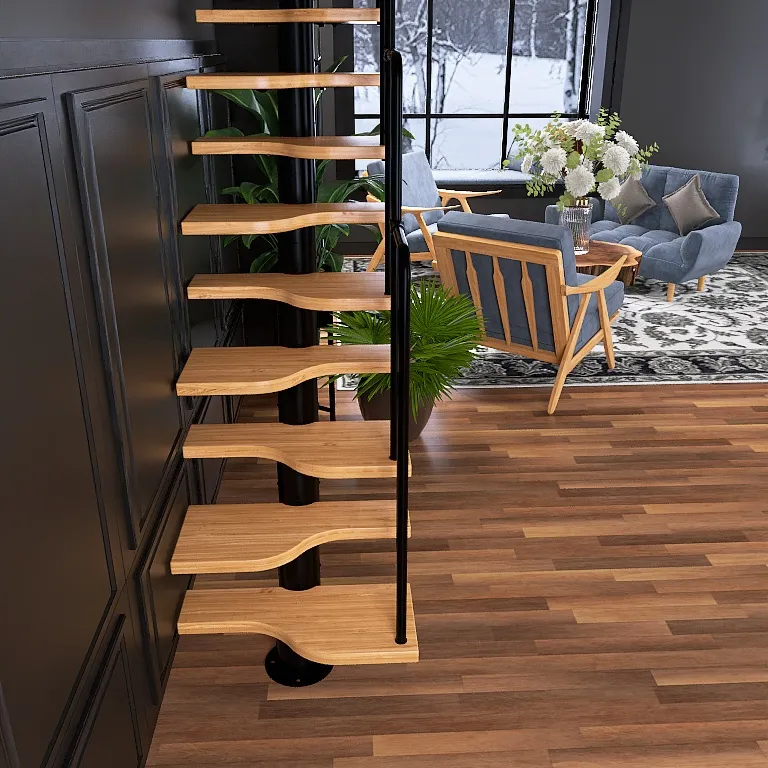 Модульная малогабаритная лестница Компакт 2250-2475, Черный, Лиственница, Нержавеющая сталь