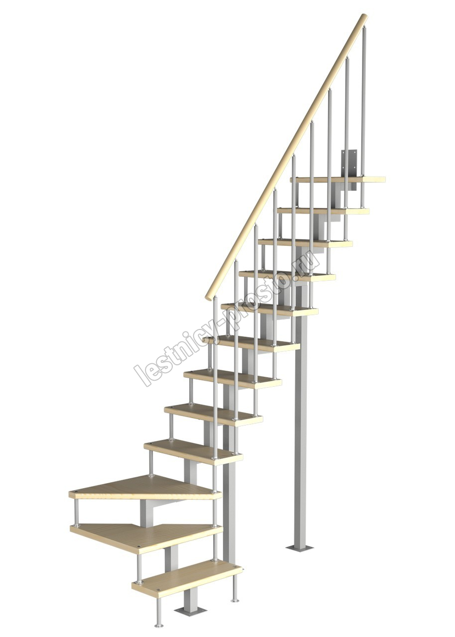 Модульная малогабаритная лестница Компакт 2700-2925, Белый, Бук, Крашеная