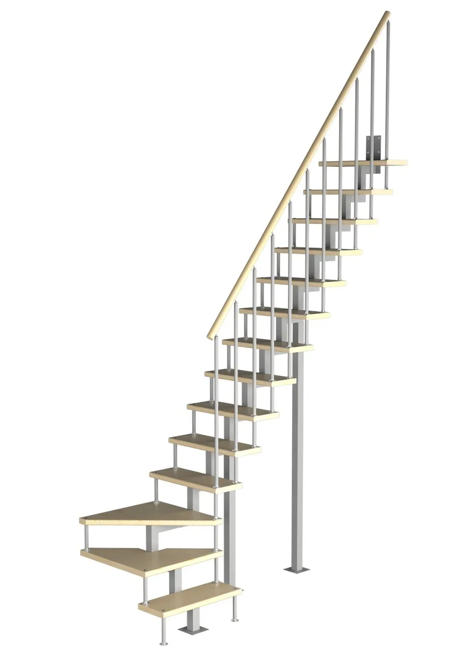 Модульная малогабаритная лестница Компакт 3150-3375, Белый, Бук, Нержавеющая сталь