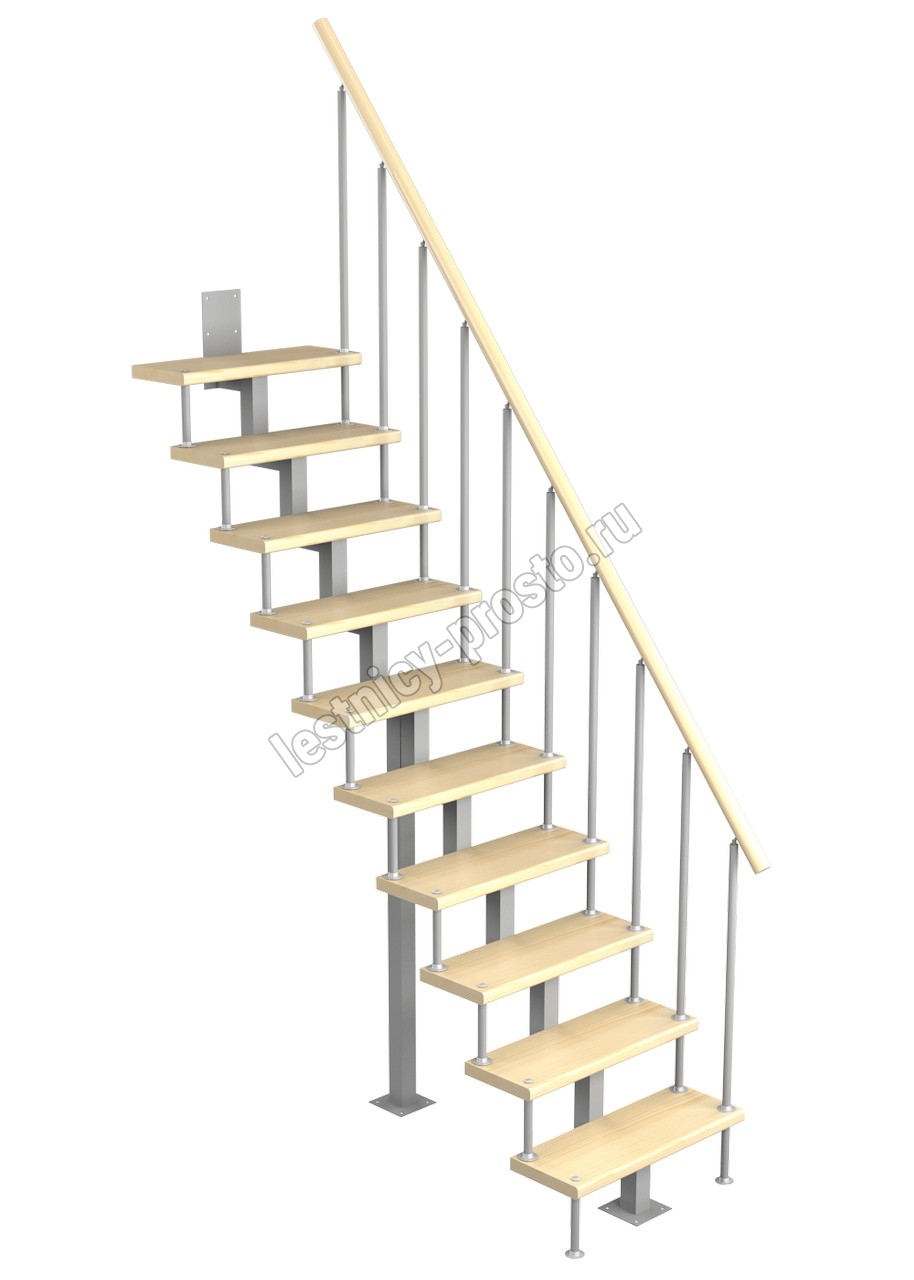 Модульная малогабаритная лестница Линия 2250-2475, Серый, Сосна, Нержавеющая сталь