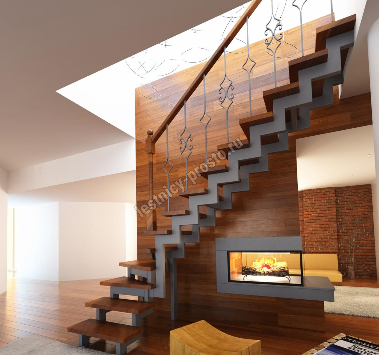 | Лестница Prosto Due 40×80 г-образная, ступени хвоя |